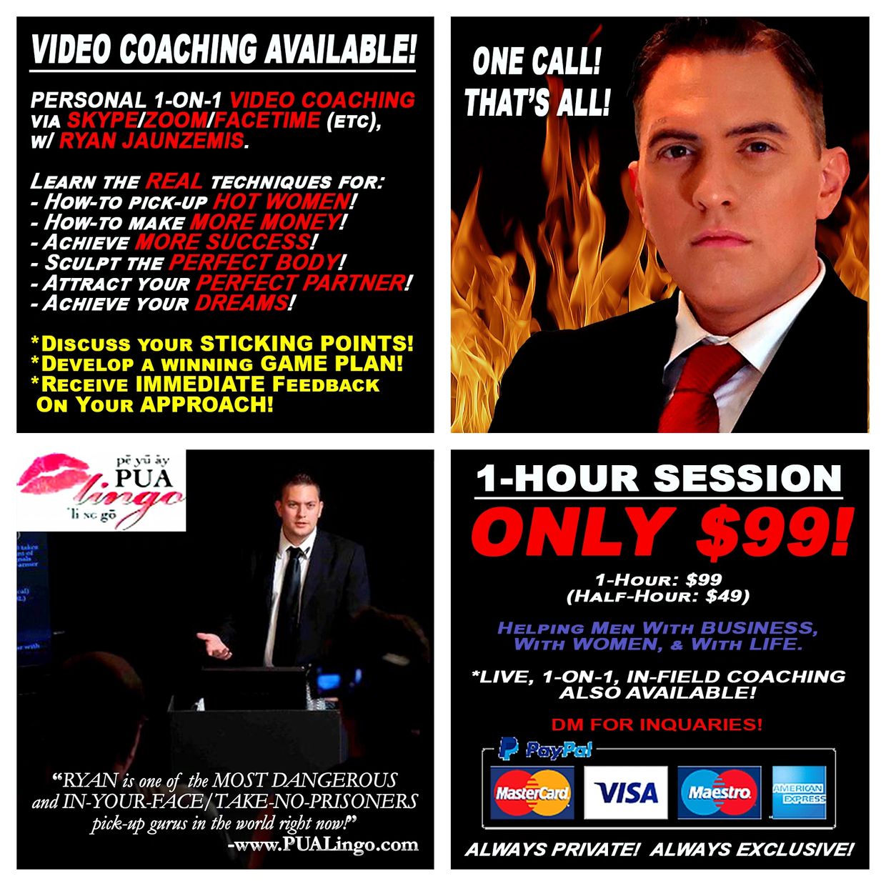 Get private 1-on-1 coaching with Ryan Jaunzemis, the expert in dating and relationships, for just $99 per hour!